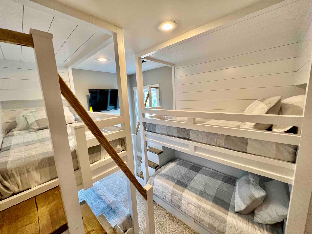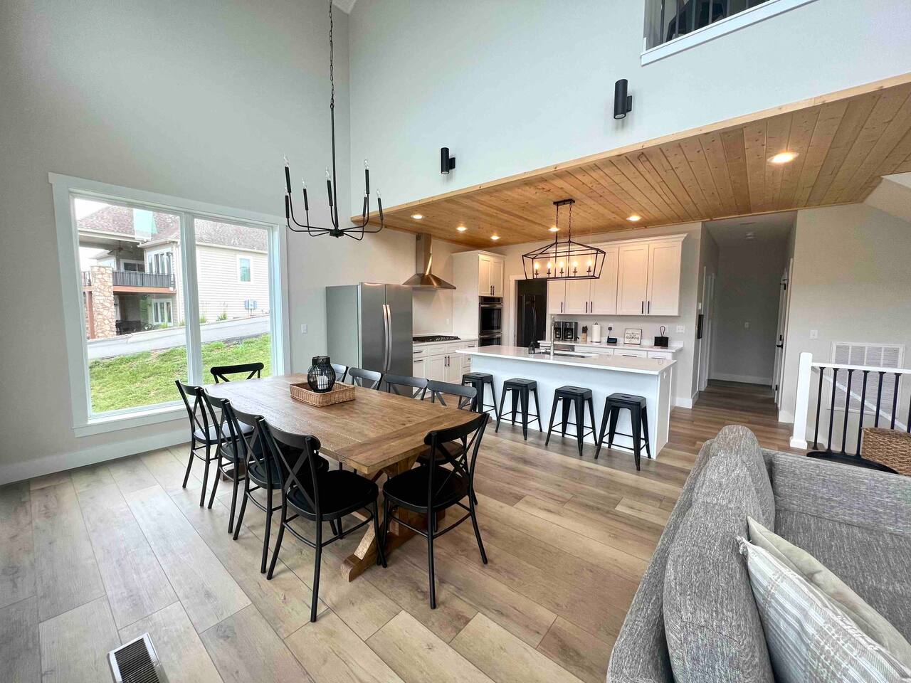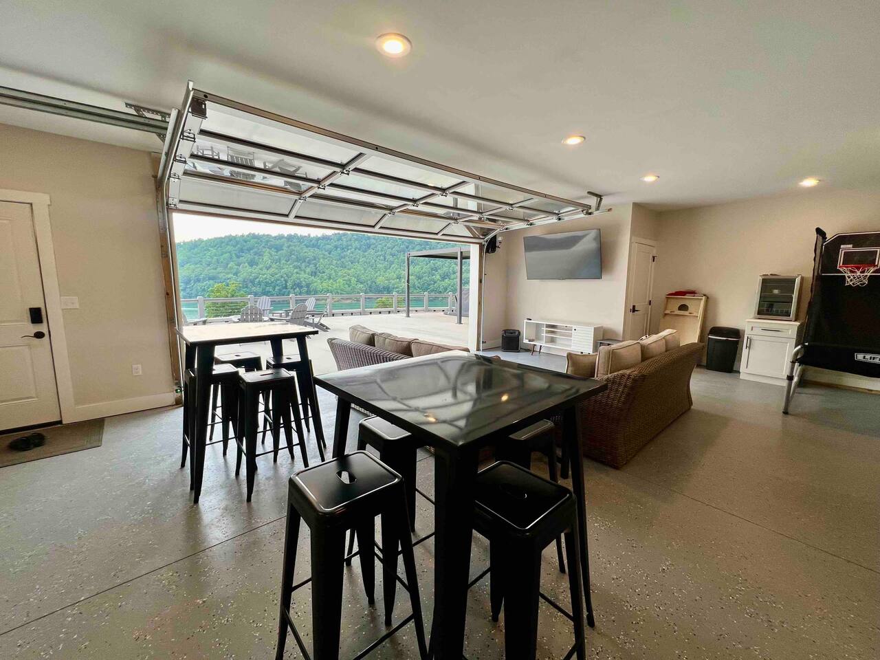 Beautiful 6 Bed/6 Bath (5 kings + bunk room) w/big lake views and a large indoor/outdoor space opening to patio, hot tub and fire pit via a glass garage door. On 2nd row, higher up for stunning lake views. Please note, there is no private dock access. There are daily boat rentals available at 3 nearby marinas and a boat launch in the neighborhood. ATV trails and rentals nearby as well as hiking. The Sugar Hollow Water Park is now open w/ daily and hourly passes, very close to our house!
